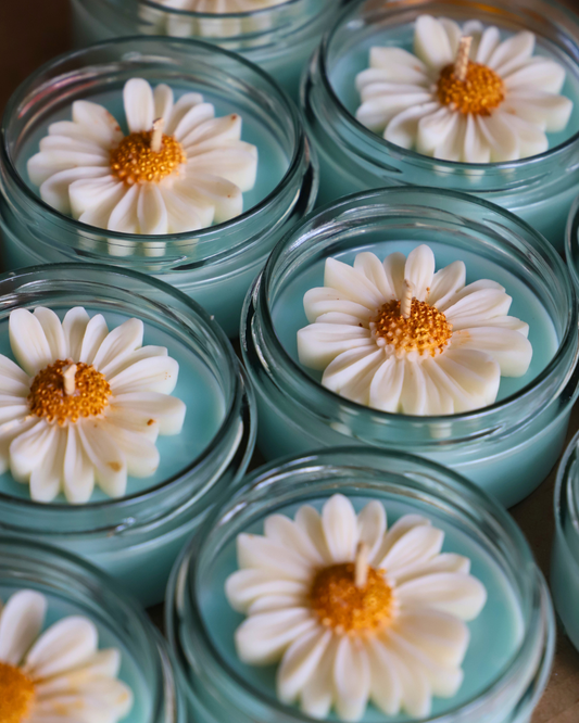 Bougie en pot parfum LINGE FRAIS et Marguerite - 110g de cire