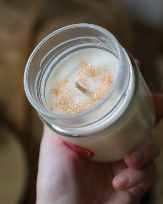 Bougie en pot parfum VANILLE FUMÉE et paillettes - 150g de cire