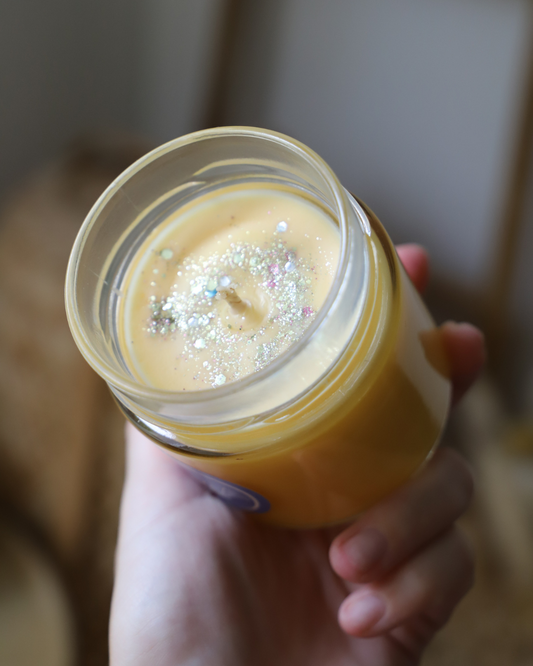 Bougie en pot parfum BANANE et paillettes - 150g de cire