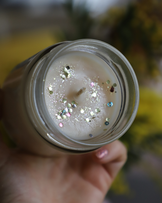 Bougie en pot parfum CIRE & MIEL et paillettes - 150g de cire