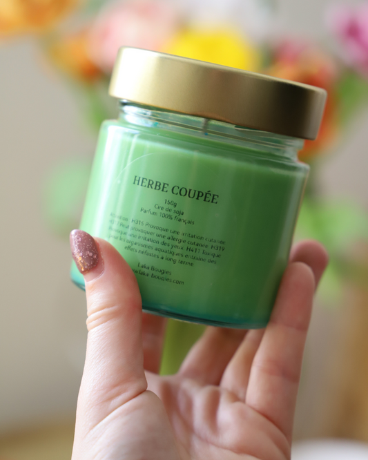 Bougie en pot parfum HERBE COUPÉE et paillettes - 150g de cire