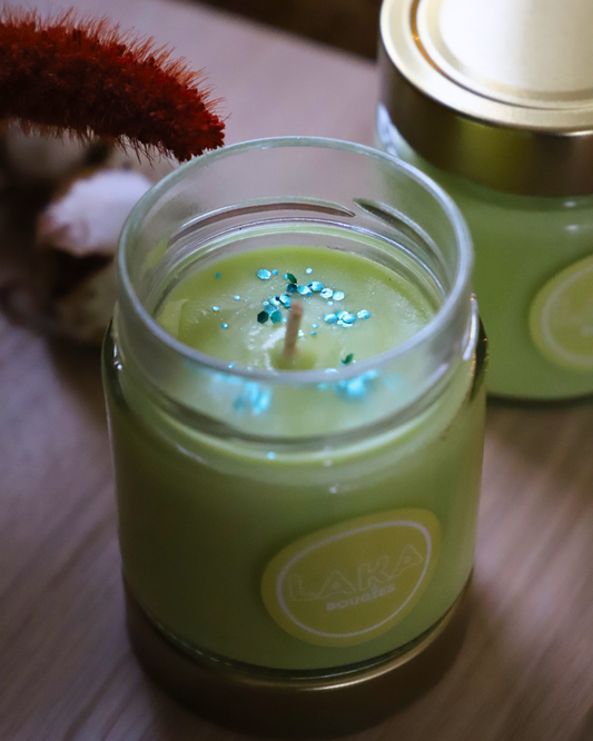 Bougie en pot parfum CITRON VERT & COCO et paillettes - 150g de cire