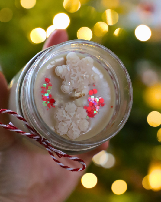 Bougie en pot SUCRE D'ORGE et paillettes - 150G