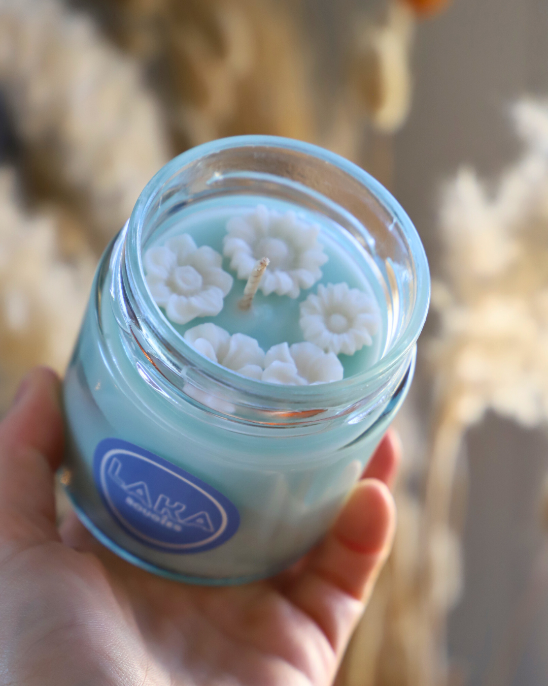 Instructions bougies en pot : Lorsque vous allumez la bougie pour la première fois, laissez-la brûler jusqu’à ce que la couche supérieure ait fondu (2h environ). Cela favorisera une combustion homogène.