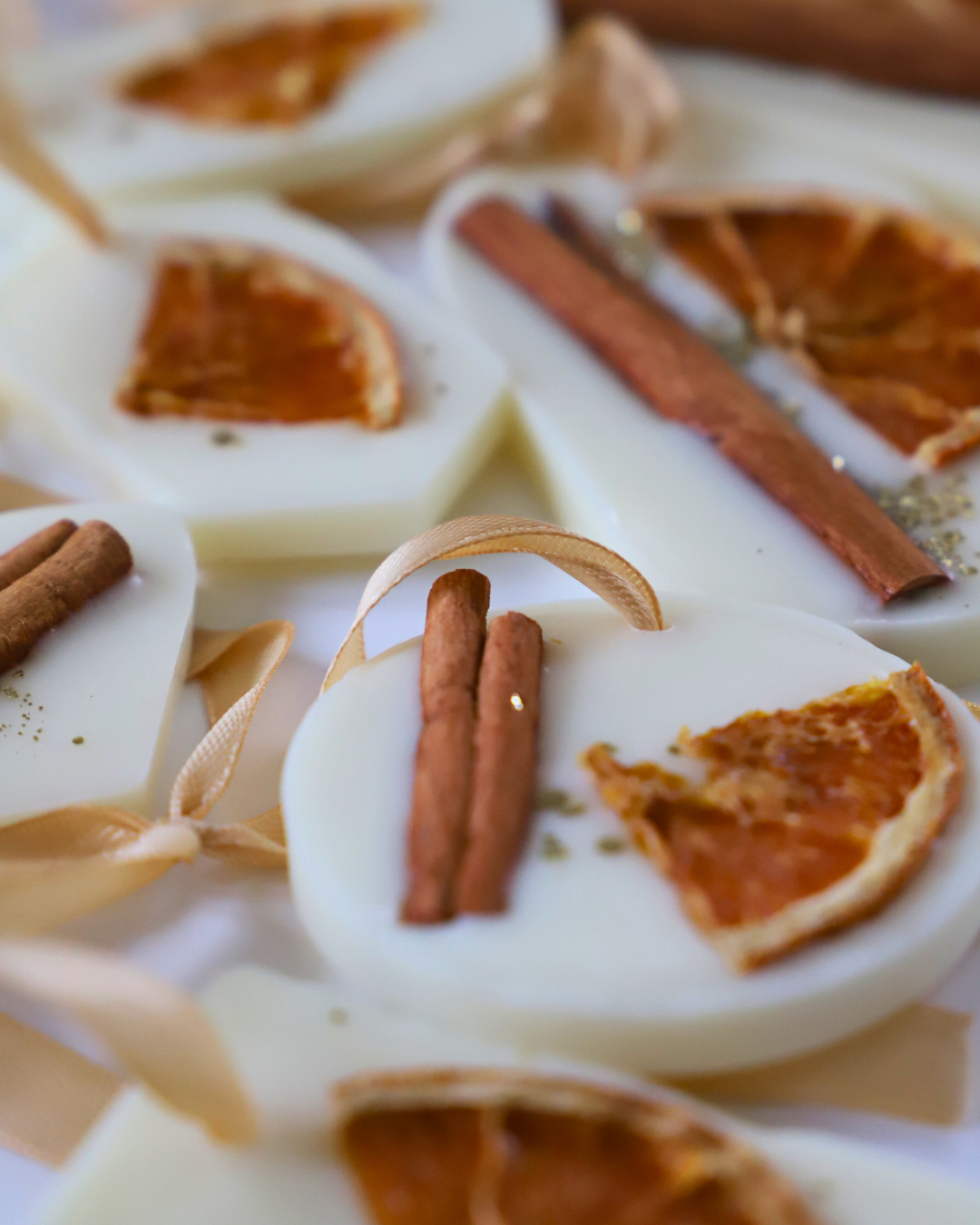 Suspensions épicée pomme-cannelle avec un morceau d'orange et de cannelle.